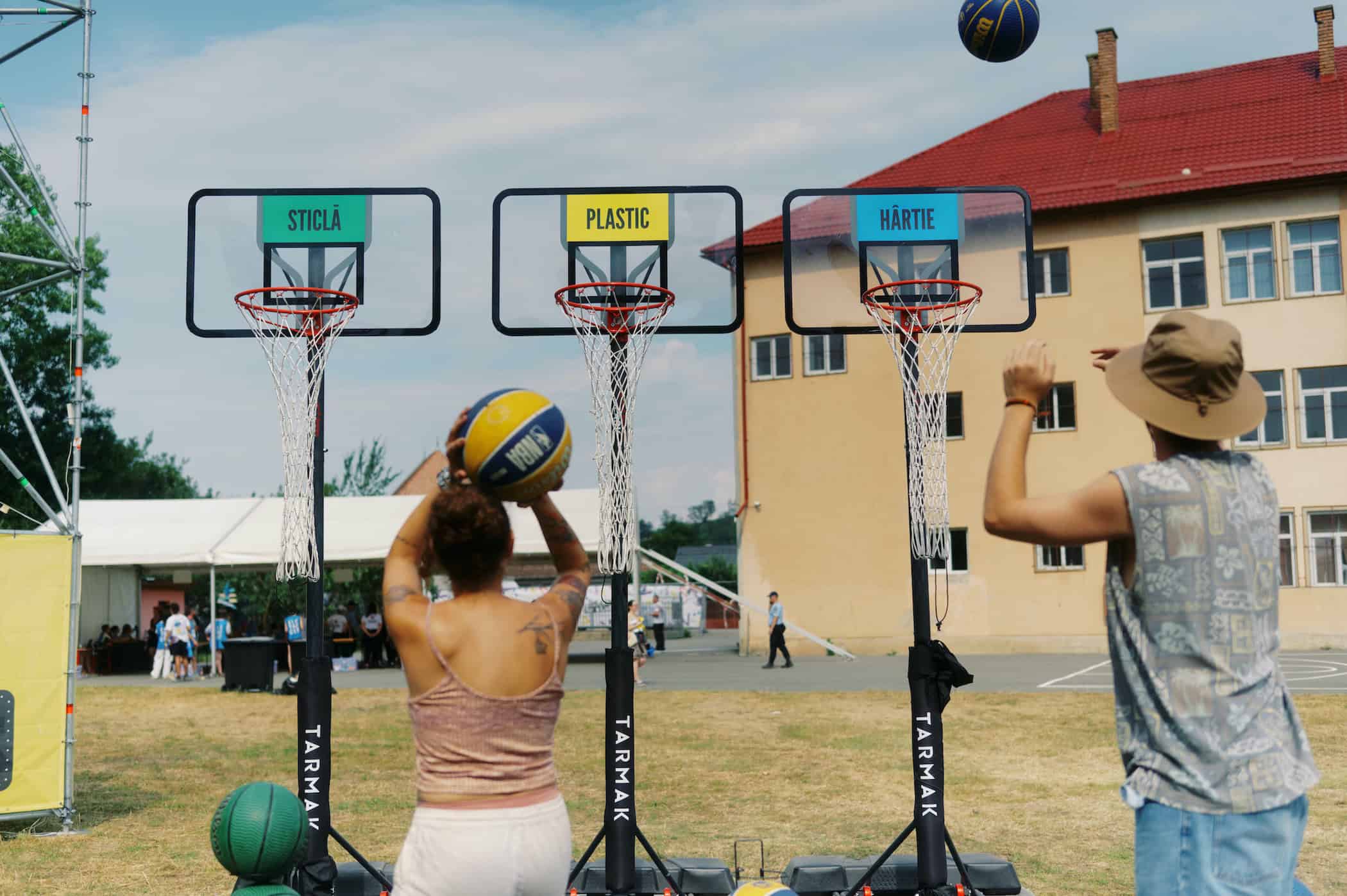 JOCUL DE MEMORIE, DE IDENTIFICARE A CÂTE DOUĂ ILUSTRAȚII IDENTICE, IMPRIMATE CU OBIECTE CE POT FI RECICLATE, ȘI STAND A BOTTLE AU FOST PRINTRE JOCURILE CELE MAI ÎNDRĂGITE ÎN ACEST AN. COZI MARI DE AȘTEPTARE AU FOST ȘI LA CELELALTE JOCURI, ÎN FIECARE ZI: BASCHET ASAP, ROATA RECICLĂRII ȘI ADEVĂR SAU RECICLARE.